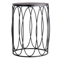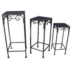 Square Wood Top Plant Stand With Brown Twist Metal Leg, Small